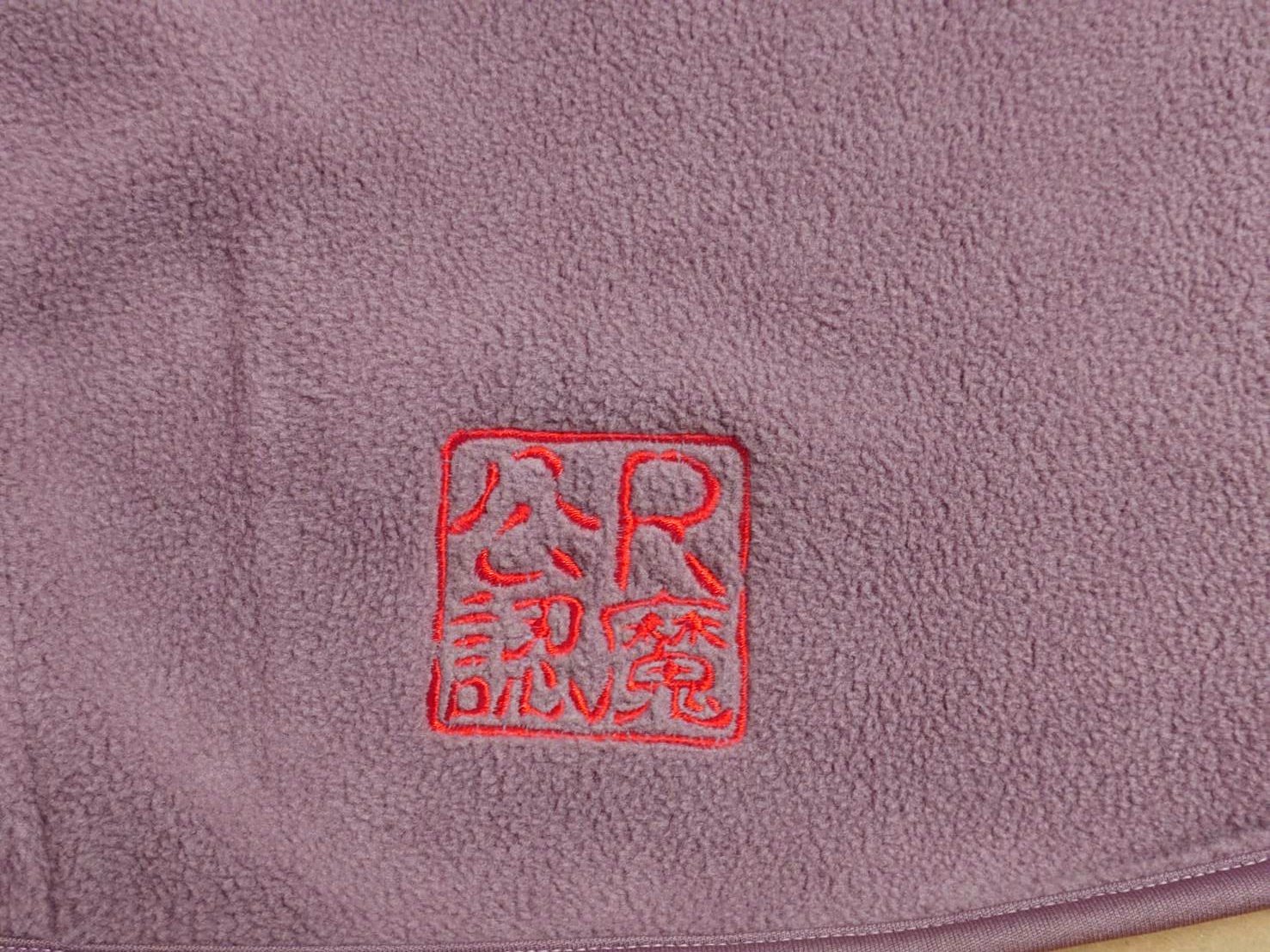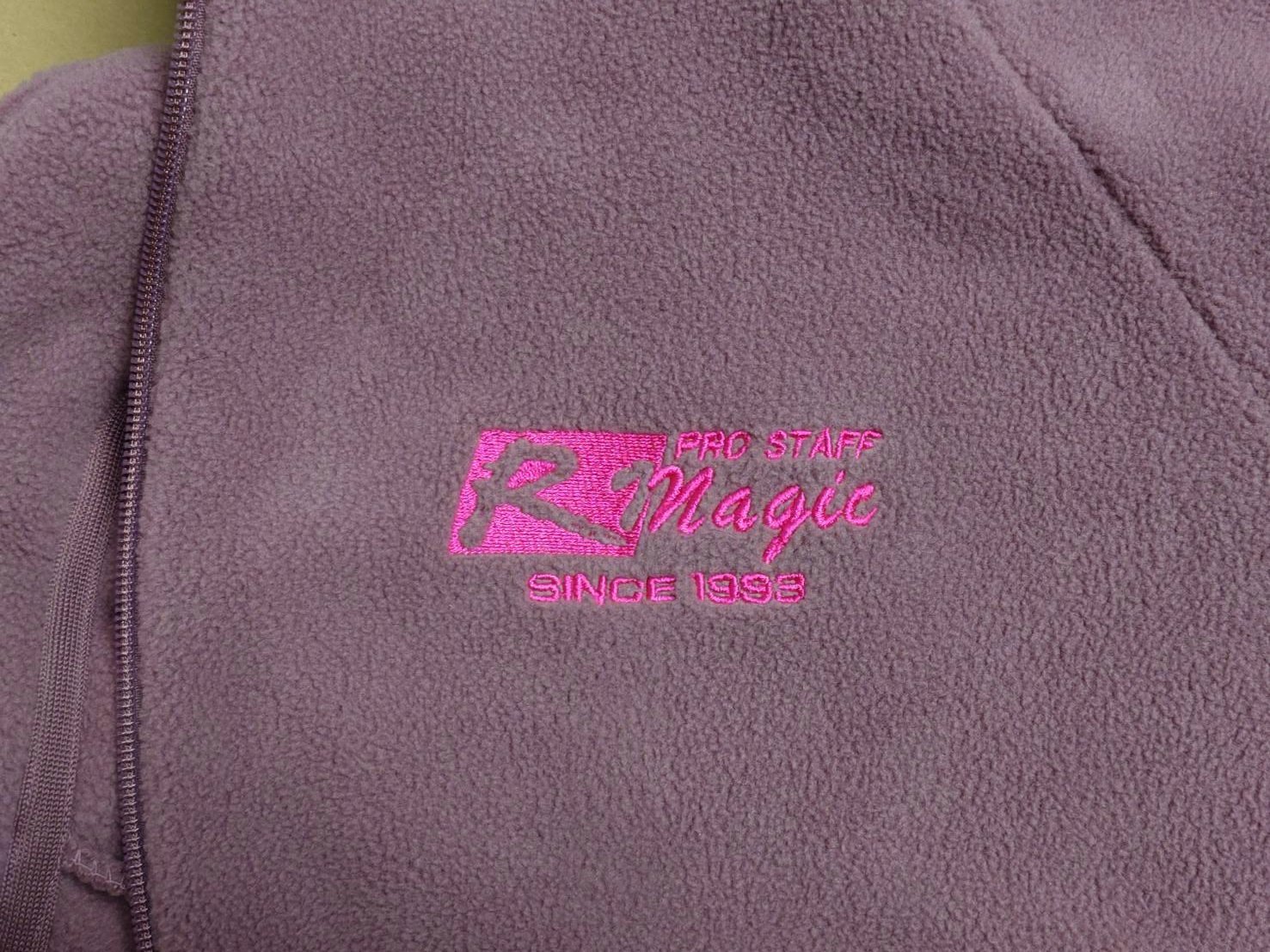 胸にR Magicのピンクのロゴ刺繍、左の腰あたりにはR魔公認のオレンジ色の刺繍です。